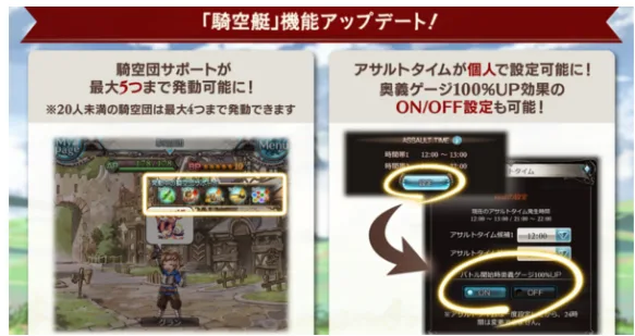 2023年5月29日のアップデートにより、アサルトタイムが個人で設定できるように変更になりました。これにより騎空団ごとに設定されていたアサルトタイムの時間を考慮して団を選ぶ必要がなくなりました。