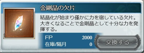 集めることで貴重なアイテムである金剛晶と交換できます。毎月必ず交換しましょう。
