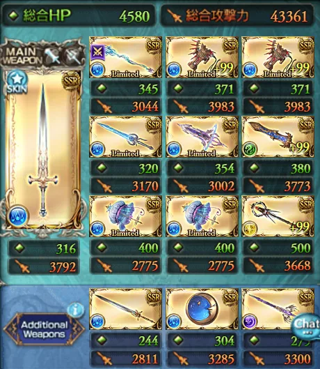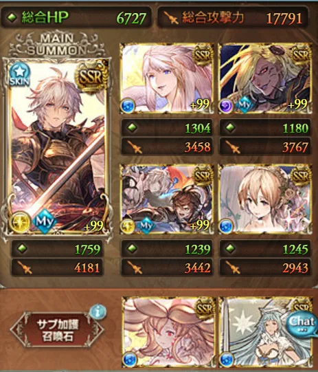 サブ加護効果でHPを盛って安定感を高めました。フレンド召喚石はヴァルナ250にしています。