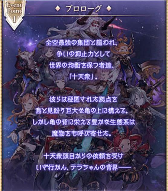 十天衆戦記は、十天衆という強力なキャラクターたちの物語が描かれます。初回は十天衆「ウーノ」「カトル」のイベント限定ストーリーが解放されます。十天衆戦記では、十天衆に関連するストーリーを楽しみながら、戦うことで新たな報酬を手に入れることができます。