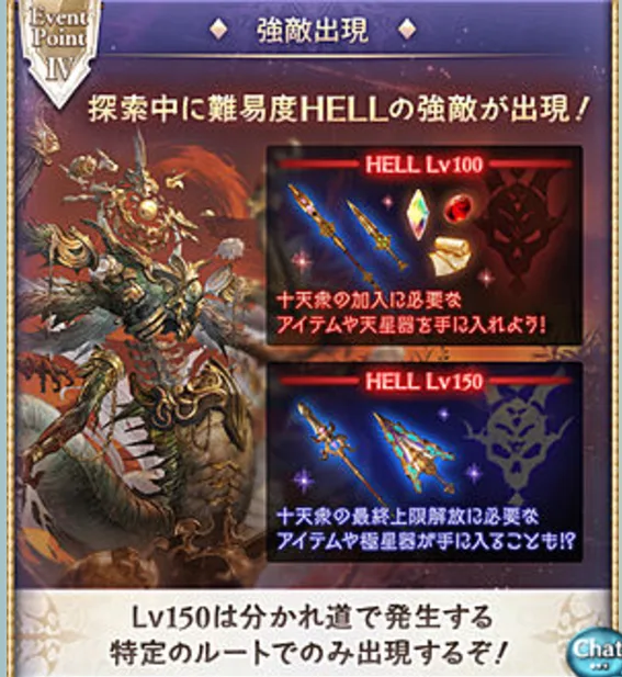 難易度HELLの強敵レベル100では、天星器や十天衆加入に必要なアイテムが主に入手できます。難易度HELLの強敵レベル150では、最終上限解放に必要な素材や極星器が主に入手できます。