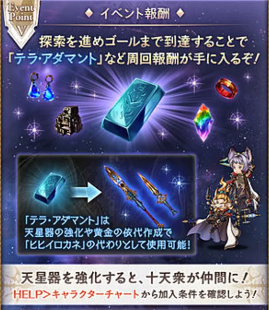 イベントは、期間限定で開催されるため、プレイヤーはイベント期間中にできるだけ進めて報酬を獲得することが大切です。報酬には、十天衆を強化するための素材や天星器や極星器、さらに新しいアイテム「テラアダマント」が入手できます。