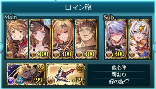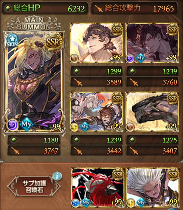 - 他はサブ加護効果を重視して、あとはステータスを盛るくらいのつもりで編成