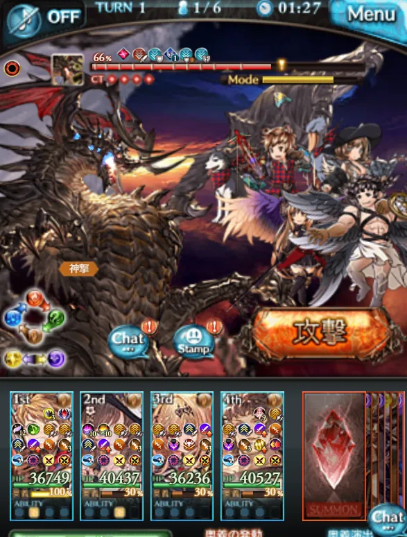 - 4凸ヤチマのサブ効果「1ターンに2回召喚可能」で1ターン討伐のダメージソースとフレンド召喚石の黒麒麟を召喚するため