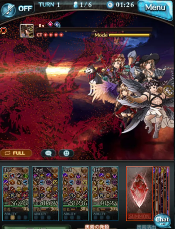 開幕から味方の全アビポチって、黒麒麟発動してラジエルの3アビだけ押していない状態。